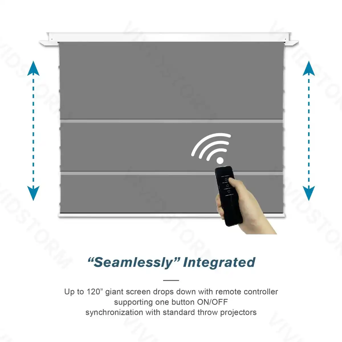 Màn chiếu âm trần quang học VIVIDSTORM VPCLALR150H 150 inch – Chiếu xa là màn chiếu âm trần cao cấp, được thiết kế chuyên biệt cho máy chiếu chiếu xa (Long Throw Projector), mang đến chất lượng hình ảnh vượt trội trong mọi môi trường ánh sáng.