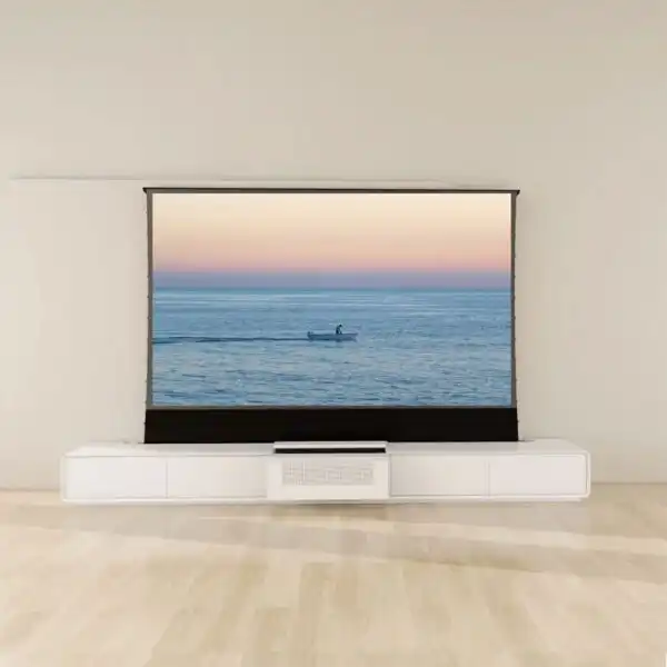 Một điểm nổi bật của tủ TV Laser VIVIDSTORM Copenhagen là khả năng đồng bộ hóa với màn chiếu VIVIDSTORM (bán riêng). Khi máy chiếu được bật, màn chiếu sẽ tự động nâng lên và ngược lại, tất cả chỉ cần điều khiển bằng một remote duy nhất. Điều này mang đến sự tiện lợi tối đa và trải nghiệm người dùng liền mạch.
