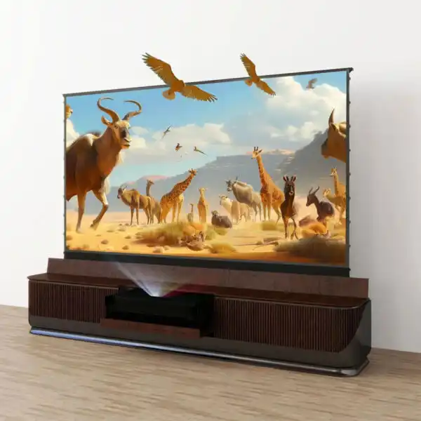 - Tùy chọn màu sắc và chất liệu đa dạng: Tủ TV Laser VIVIDSTORM Fully Concealed DUNE 100 inch có sẵn các màu như gỗ óc chó, óc chó hun khói, gỗ sồi; đồng thời hỗ trợ tùy chỉnh màu sắc và kích thước theo yêu cầu, phù hợp với mọi phong cách nội thất.